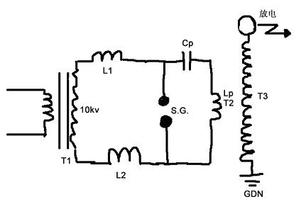 打火器其實相當于一個開關器,未打火時能量由變壓器傳遞到電容陣,當電容陣充電完畢時兩極電壓達到擊穿打火中的縫隙的電壓時,打火器打火,此時電容陣與主線圈形成回路,完成L/C振蕩進而將能量傳遞到次極線圈.