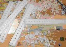 制作提示:當用電鉆在塑料材質上打眼時,由于塑料導熱能力低,常常使鉆頭過熱,導致鉆頭退火和打的眼被高溫燒變形,所以一定要鉆頭打眼要沾水。