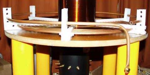 在本特斯拉線圈的設計中主線圈采用銅管繞制成蚊香狀.銅管是用于汽車,供熱,中央空調中的那種管壁較厚的承壓銅管.直徑8毫米大約繞制9-10匝 (大約需要9米)