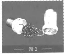 用力將其燈頭拔出后。可拽出內部的電子鎮流器線路板,整體結構如圖2、圖3所示。
