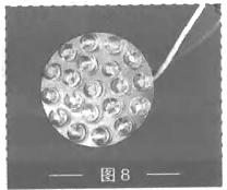 首先把20個高亮LED插到PCB板上并貼緊、焊好,如圖7圖8所示。