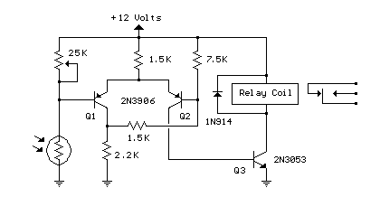 這基本上是一個施密特觸發器電路接收從硫化鎘光敏電阻和控制繼電器。 調節電位器,使它可以進行調整起控亮度。