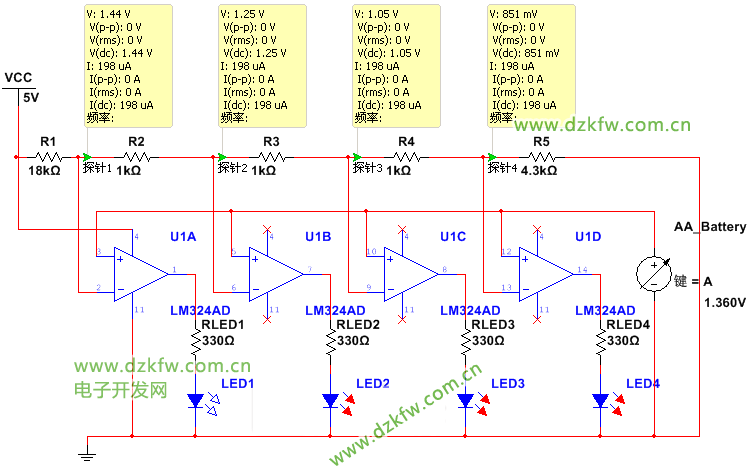 以前用LM324做過鋰電指示, 今天來做1.5V電池的