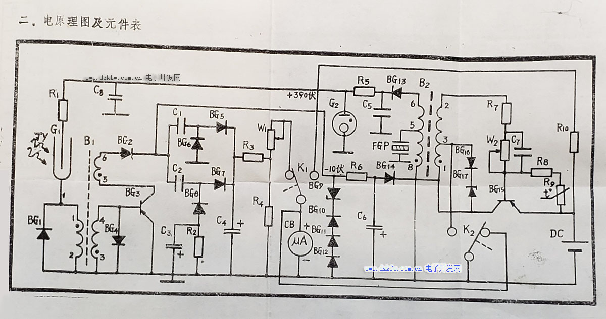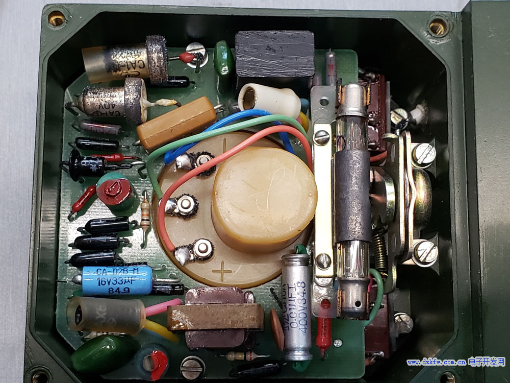 可見一只很小的蓋格管(J405r),包有鉛皮,應(yīng)該是起能量補償作用。鉛皮上有個洞,供校驗源的乙種射線穿透之用。