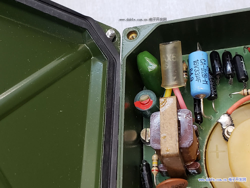 電池盒是獨立的,電池正極通過穿心電容引入儀器,負極接外殼。電池盒允許進水。