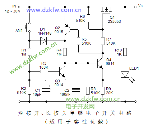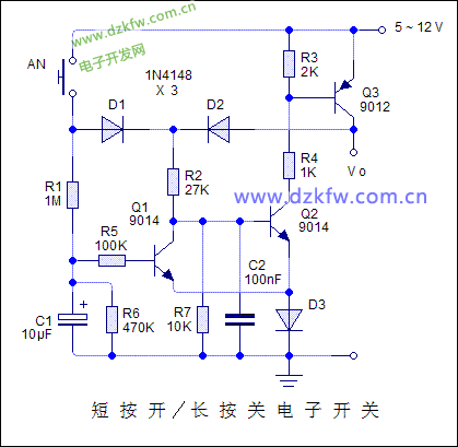 短按開,長按關(guān)單鍵電子開關(guān)電路