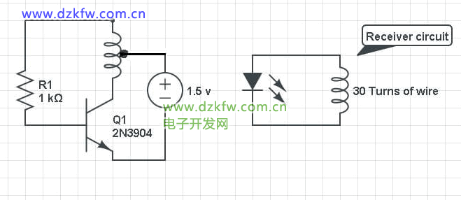 4)連接:將線圈的抽頭端連接到AA電池的正極,將三極管的發(fā)射極連接到AA電池的負(fù)極。現(xiàn)在你可以把連接LED的線圈慢慢接近抽頭線圈,正常的話LED將點(diǎn)亮。