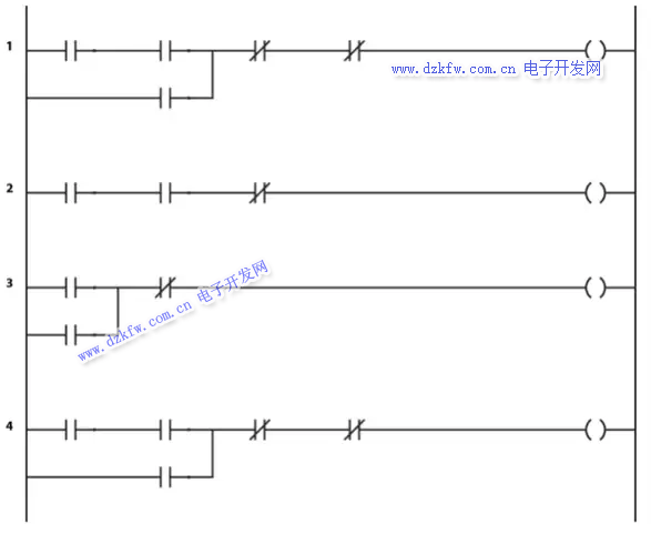 3)梯形圖主要用于位邏輯操作,其規范有PLCOpen負責制定,因此梯形圖是標準化的PLC編程語言,該標準為IEC 61131-3。