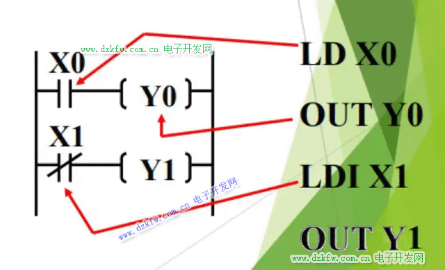LDI:取反指令。表示一個與輸入母線相連的常閉接點指令。