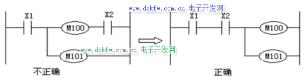 如果在同一程序中同一元件的線圈使用兩次或多次,則稱為雙線圈輸出。這時前面的輸出無效,只有最后一次才有效,一般不應出現雙線圈輸出。
