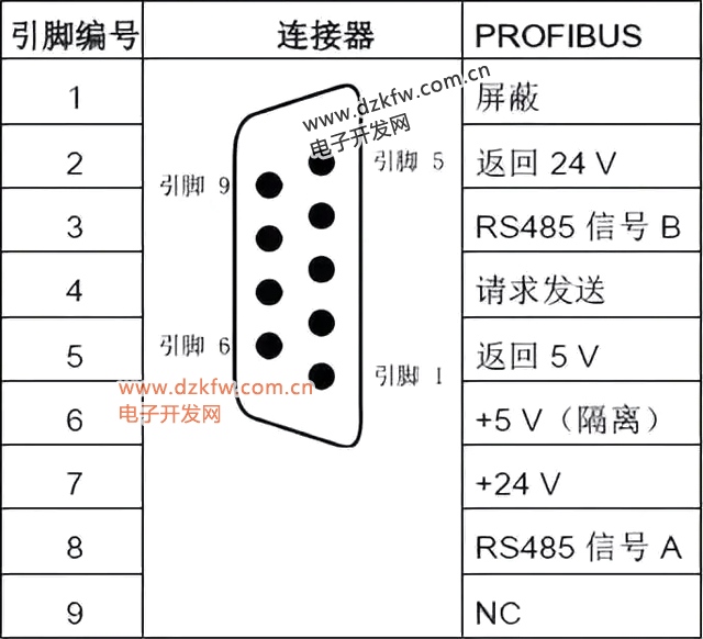 另外,關于EM DP01通信端口,其上的RS485串行通信接口為RS485兼容的九針迷你D型接口,符合歐洲標準EN 50170規定的PROFIBUS標準。引腳配置請參照相關圖示。