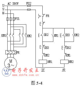 圖5-4 三相異步電動機的正反轉(zhuǎn)控制電路