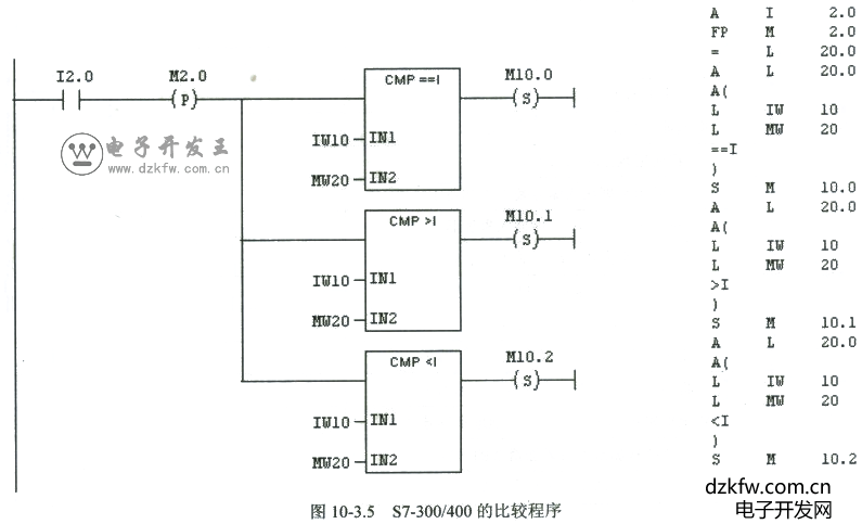 ②如果IW10 - MW20,標(biāo)志Ml0.0為“l(fā)”;IW10>MW20,Ml0.1為“1”;IW10<MW20,M10.2為“1”;