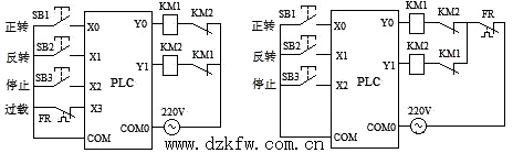 | 正轉交流接觸器 KM1 — Y0 ; 反轉交流接觸器 KM2 — Y1 。 |