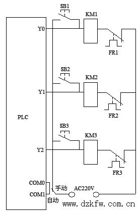 在 PLC 的輸出功率允許下,通 / 斷狀態完全相同的多個負載并聯后,可以共用一個輸出點,通過外部的或 PLC 控制的轉換開關的切換,一個輸出點可以控制兩個或多個不同時工作的負載。