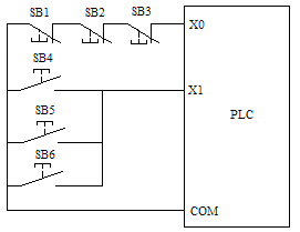 例如某負載可以在 3 處起動 / 停止,可以將 3 個起動信號并聯,將 3 個停止信號串聯,分別送給 PLC 的兩個輸入點,如下圖所示。