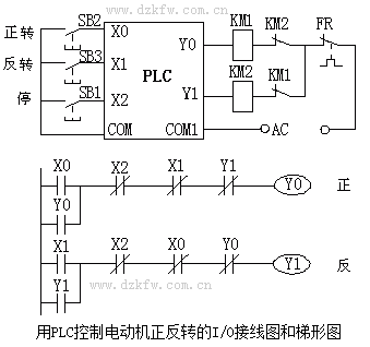 圖3 用PLC控制電動機正反轉的I/O接線圖和梯形圖