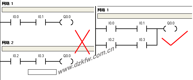觸點可以無數次使用,輸出線圈不可以,輸出線圈只能使用一次。
