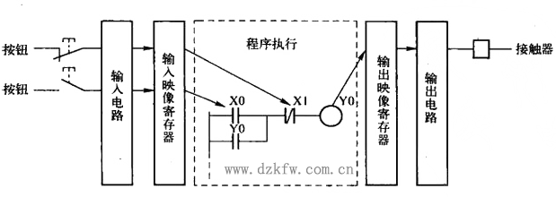 在程序執行階段,PLC對程序按順序進行掃描執行。若程序用梯形圖來表示,則總是按先上后下,先左后右的順序進行。當遇到程序跳轉指令時,則根據跳轉條件是否滿足來決定程序是否跳轉。當指令中涉及到輸入、輸出狀態時,PLC從輸入映像寄存器和元件映象寄存器中讀出,根據用戶程序進行運算,運算的結果再存入元件映象寄存器中。對于元件映象寄存器來說,其內容會隨程序執行的過程而變化。www.tsxfzk.com