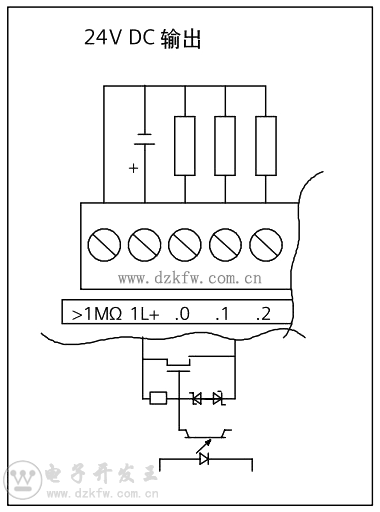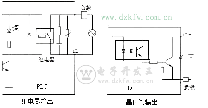 上圖右邊是晶體管的輸出電路。輸出信號經光耦合器送給晶體管,晶體管的飽和導通和截止相當于觸點的接通和斷開。晶體管輸出電路的工作頻率可達20~100kHz。