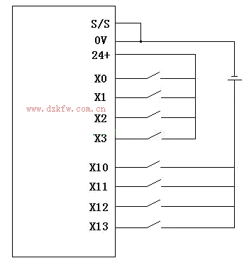 【8】在FX3U PLC的輸入端口接入無源開關(guān),XO—X3使用內(nèi)置24V電源,而在X10—X13使用外置電源?應(yīng)如何接線?