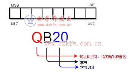 尋址方式:地址標識符+B+字節(jié)地址,其中,"B"即代表字節(jié)。