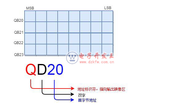 尋址方式:地址標識符+D+首字節(jié)地址,其中,"D"代表雙字。