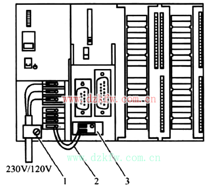 說明:1為主令開關;2為短路和過載保護;3為負載電流源(電氣隔離);4為接地導體的可拆卸連接,用于定位接地故障;5為CPU(非CPU 31×C)的接地滑動觸點。