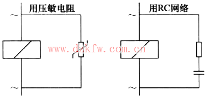 用壓敏電阻或RC網絡可抑制以AC電源驅動的線包所產生的浪涌電壓,如圖11所示。