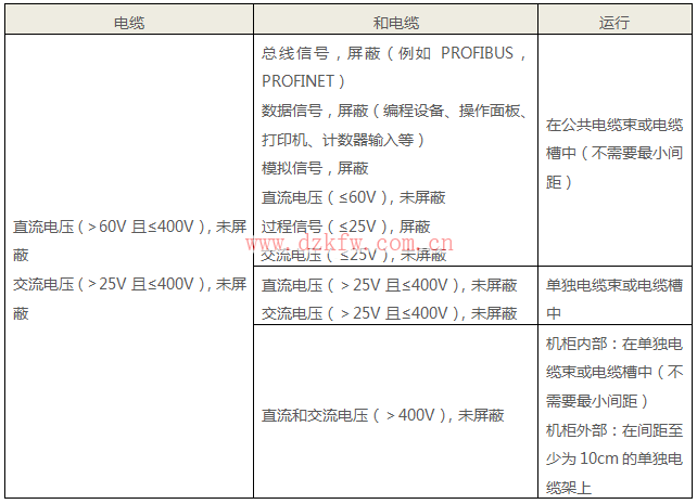 要求Ⅱ:系統布線分組(高壓/電源/信號/數據電纜),用單獨的管道或單獨的電纜束來布放高壓、信號或數據線。數據電纜和低壓電纜與其他電纜的布置要求見表3。