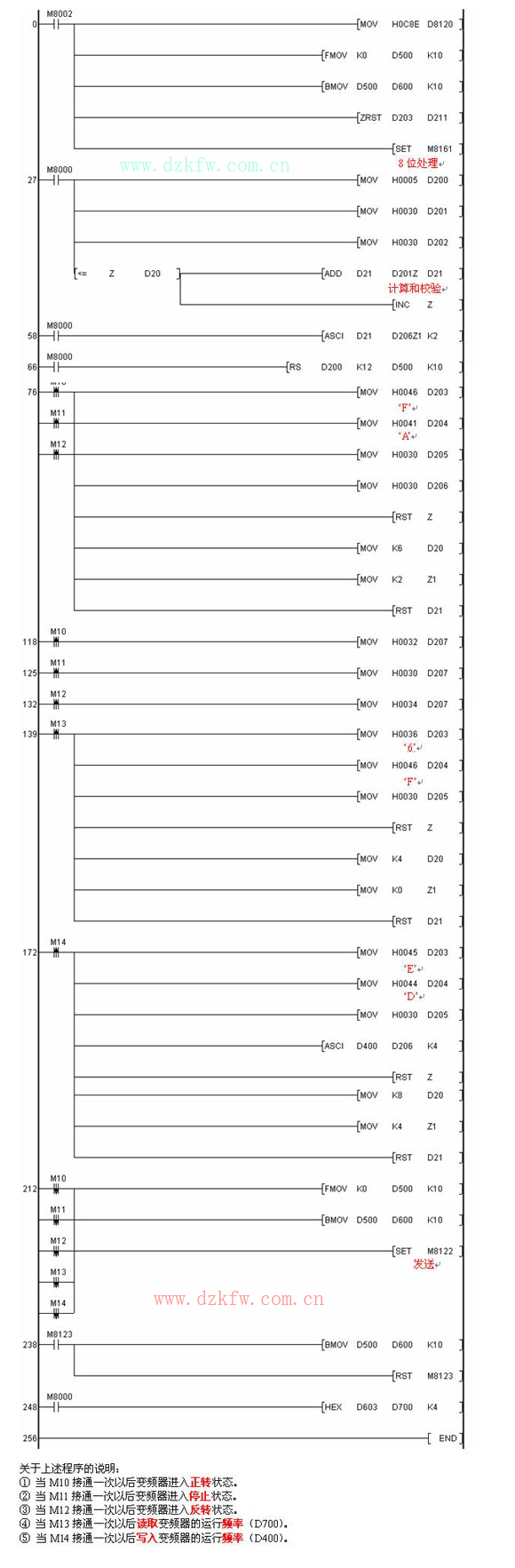 有關利用三菱變頻器協議與變頻器進行通訊的PLC程序如下: