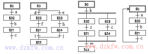 循環(huán)序列用于一個(gè)順序過程的多次反復(fù)執(zhí)行,如下圖 ( d ) 所示。當(dāng) S21 步為活動(dòng)步,且滿足轉(zhuǎn)移條件 c 時(shí),就回到 S0 步開始新一輪的循環(huán)。