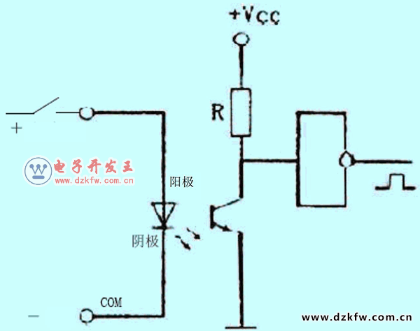 值得說明的是,公共端可以是發(fā)光二極管的陽極連接一起,也可以是陰極連接一起,根據(jù)發(fā)光二極管COM端連接的不同,可以分為“共陽極”和“共陰極”。例如:三菱FX系列PLC輸入電路就采用的是“共陽極”接法,而西門子或臺達PLC的COM端是懸空的,可以由用戶來根據(jù)實際需要或習(xí)慣來采用是“共陽極”還是“共陰極”。