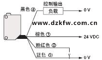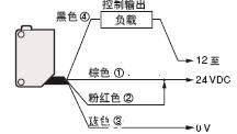 如下圖所示,傳感器的輸出是NPN形式的。從圖中負載接線可知,傳感器動作時,輸出0V(黑線④處)。這就要求,PLC的公共端(COM)是正極。因此,對于此線路,當(dāng)PLC的公共端接(CON)正極時,PLC的輸入就只能用NPN形式。