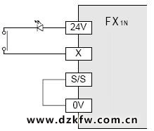 有時,需要在PLC的輸入節(jié)點中串入一個發(fā)光二極管來為指示。如下圖所示: