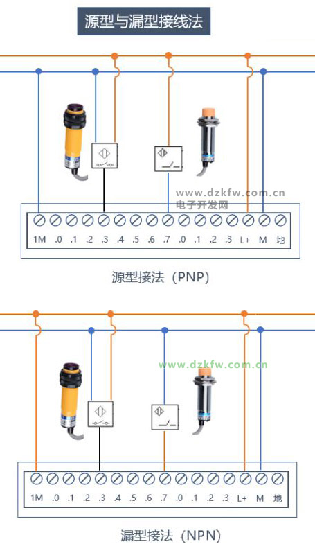 在許多自動化控制設(shè)備,如變頻器、控制器等,為了適應(yīng)不同形式的有觸點信號輸入,常有源型邏輯與漏型邏輯切換功能。在此兩種不同的邏輯形式下,輸入信號的接線是不同的。