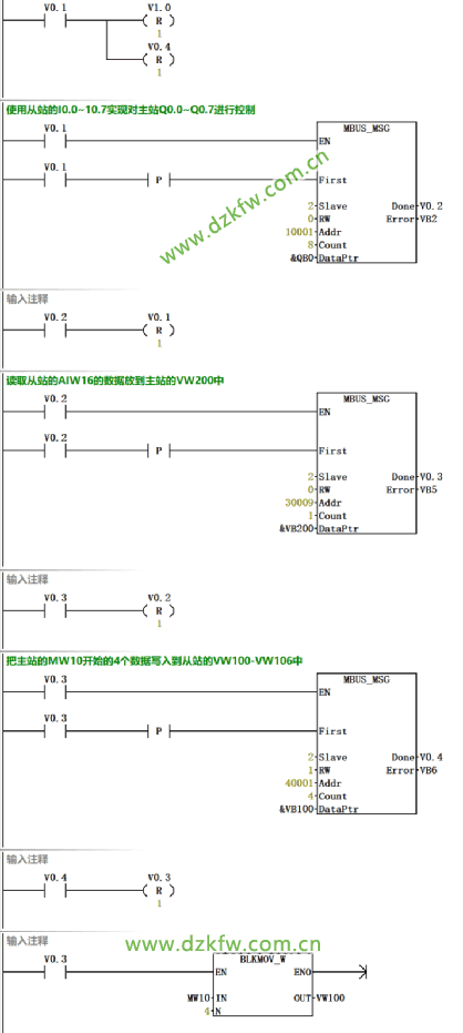 第一種狀況:PLC作Modbus主網(wǎng),Modbus詳細(xì)地址和PLC指南里的詳細(xì)地址一致,比如當(dāng)家做主站的S7-200的MBUS_MSG命令用以向Modbus從站推送要求信息,和解決從站回到的回應(yīng)信息。要載入從站(另一臺(tái)S7-200)的I0.0逐漸的詳細(xì)地址區(qū)的時(shí)候,它的鍵入主要參數(shù)Addr(Modbus詳細(xì)地址)為10001。S7-200從站維持存儲(chǔ)器的V區(qū)起止詳細(xì)地址為VB200時(shí),要載入從站VW200逐漸的V儲(chǔ)存區(qū)的時(shí)候,維持存儲(chǔ)器的詳細(xì)地址是40001。