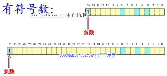 整數(shù)為有符號(hào)數(shù),最高位為符號(hào)位,1表示負(fù)數(shù),0表示正數(shù)。范圍為-32768~32767。