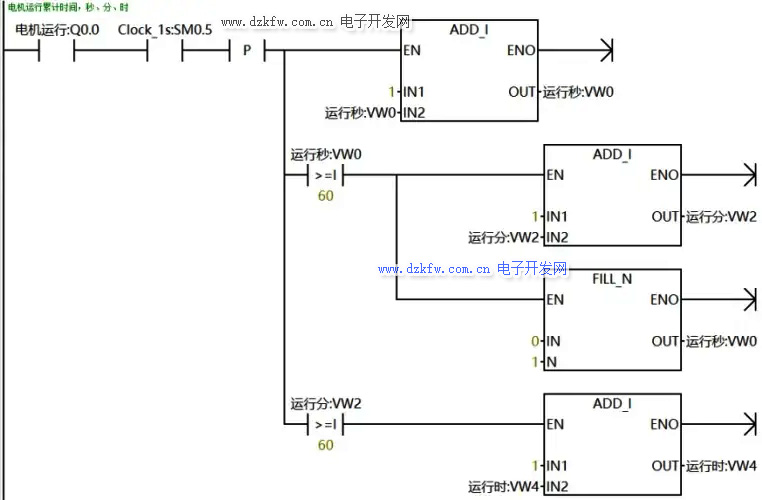 累計時間使用了實例參考:西門子200SMART PLC電機運行時間累計及維保程序設計