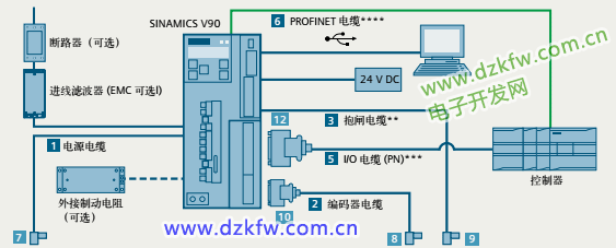 SINAMICS V90 PROFINET 版本的系統(tǒng)接線圖: