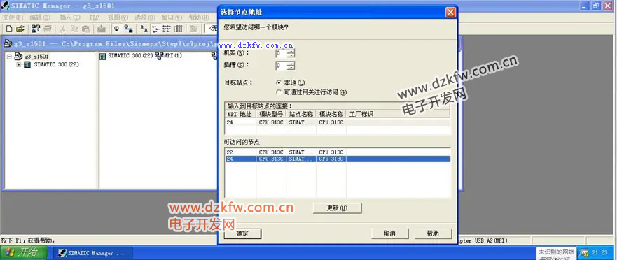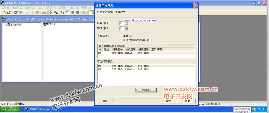 2.10 重復2.5到2.7的過程,將多個PLC的程序上載到項目中。下圖選擇的是G3-S1501柜內處于下方的PLC,MPI地址為24。