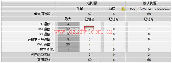 注:"資源數(默認)"是當HMI與S7-1200在一個項目中組態HMI連接時,會占用S7-1200的組態的HMI連接個數。