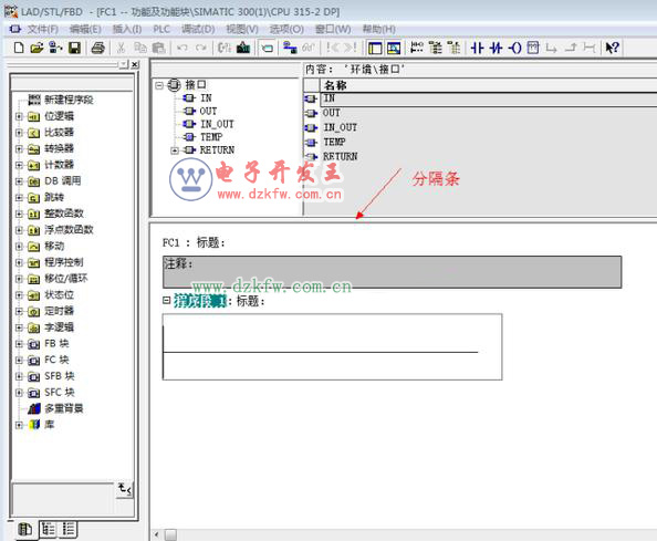1)FC的返回值RET_VAL實際上輸出參數,因此有無動態變量(STAT)是二者的局部變量的本質區別,功能塊的靜態變量用北京數據塊來保存,如果功能有執行完后需要保存的數據,只能存放在全局變量(I/O、PI/PO、M、T、共享數據塊DB中),但是這樣會影響功能的可移植性,如果功能或功能塊的內部不使用全局變量,只使用局部變量,不需要做任何修改,就可以將塊移植到其他項目,如果塊使用了全局變量,在移植時需要重新統一分配它們的內部使用的全局變量地址,以保證不會出現地址沖突,當程序復雜,子程序和中斷程序很多時,這種重新分配全局變量地址的工作量非常大,也容易出錯。如果邏輯塊有執行完成需要保存的數據,顯然應使用功能塊,而不是功能。
