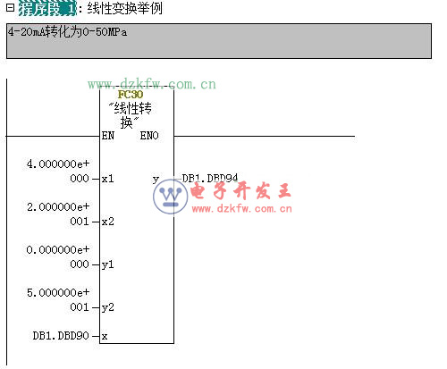 新建一個功能塊(如FC30),在FC30中編寫線性變換子程序。