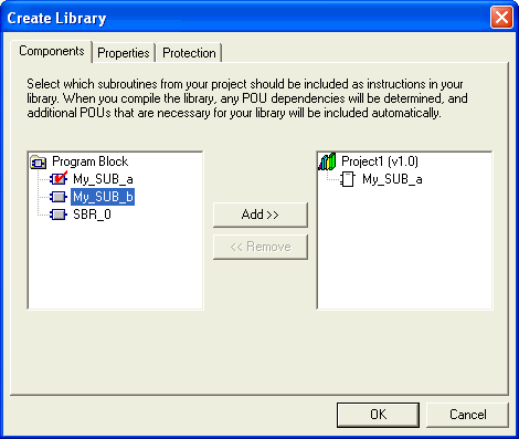 圖3. 使用Add(添加)、Remove(刪除)按鈕選擇要建立成為庫指令的子程序