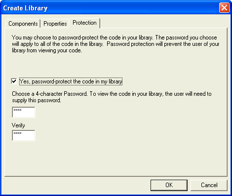 密碼設置是可選項。密碼須輸入兩次以驗證。保護后不知道密碼的人不能查看庫指令的程序