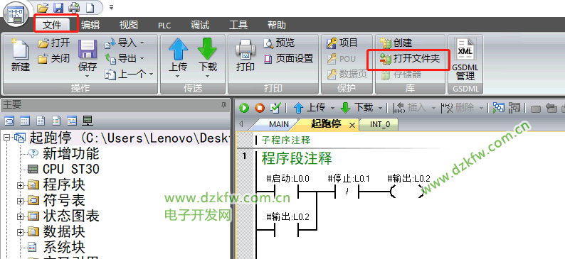 在寫程序的時候,發現有些程序結構是一樣的,只是控制的I/O點不一樣而已,這個時候,我們可以建立一個庫指令,下次遇到相同情況,我們就不需要再去寫,可以直接將建立的指令庫調出來使用,更改一下輸入輸出就行,這樣可以大大節省了我們編程的時間,方便快捷。那么,怎樣在S7-200SMART里面建立程序庫呢?下面我們以簡單的起跑停程序來進行講解演練。