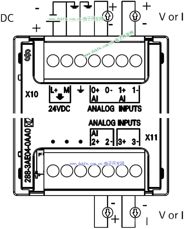 圖4 模擬量電壓/電流兩線制接線