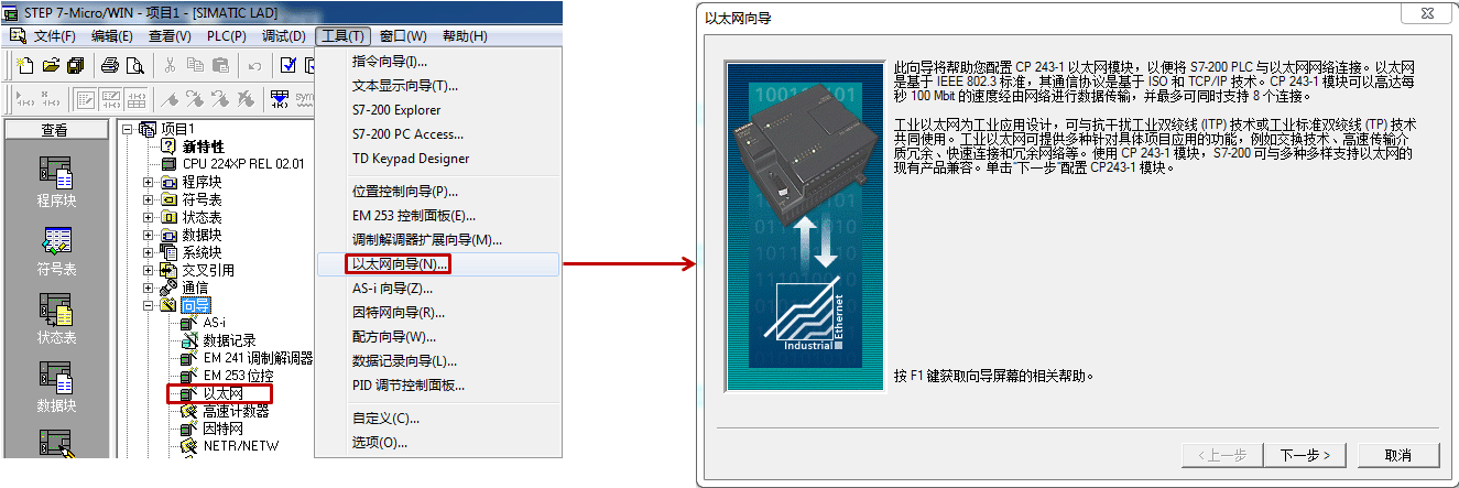 1. 打開STEP 7-Micro/WIN,新建以太網向導,可以通過以下兩種方式新建,得到以太網向導的首頁,參見圖1。