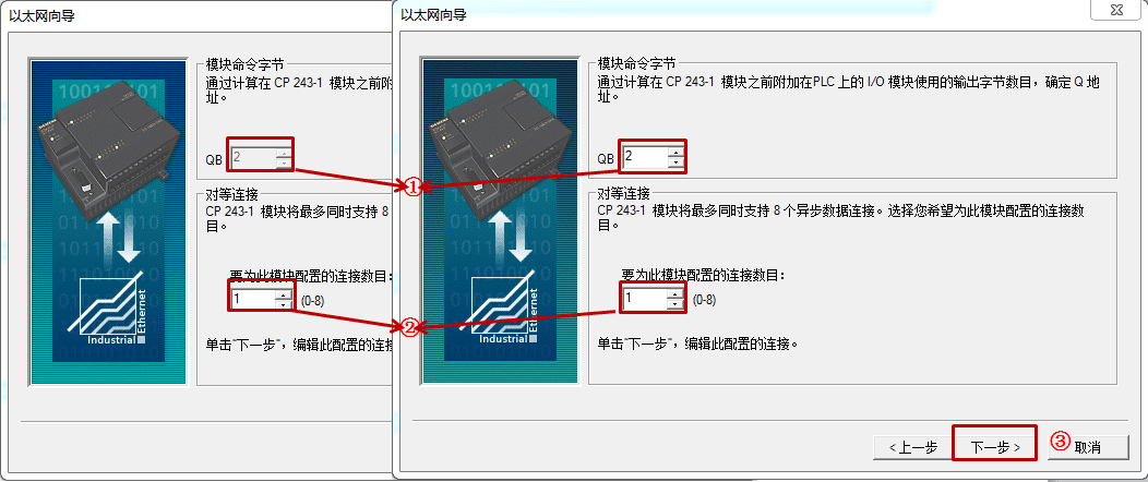 ②修改連接數目,CP243-1連接的SIMATIC NET的個數即為連接數目需要增加的數目,此處只和一個SIMATIC NET通信,則連接數目從0變為1;